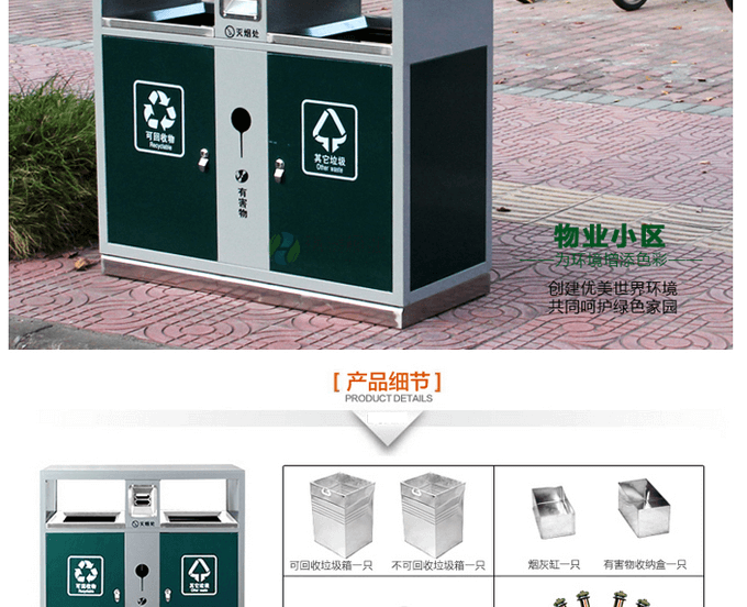 6、配置鍍鋅板或塑膠內(nèi)桶,便于垃圾清倒;