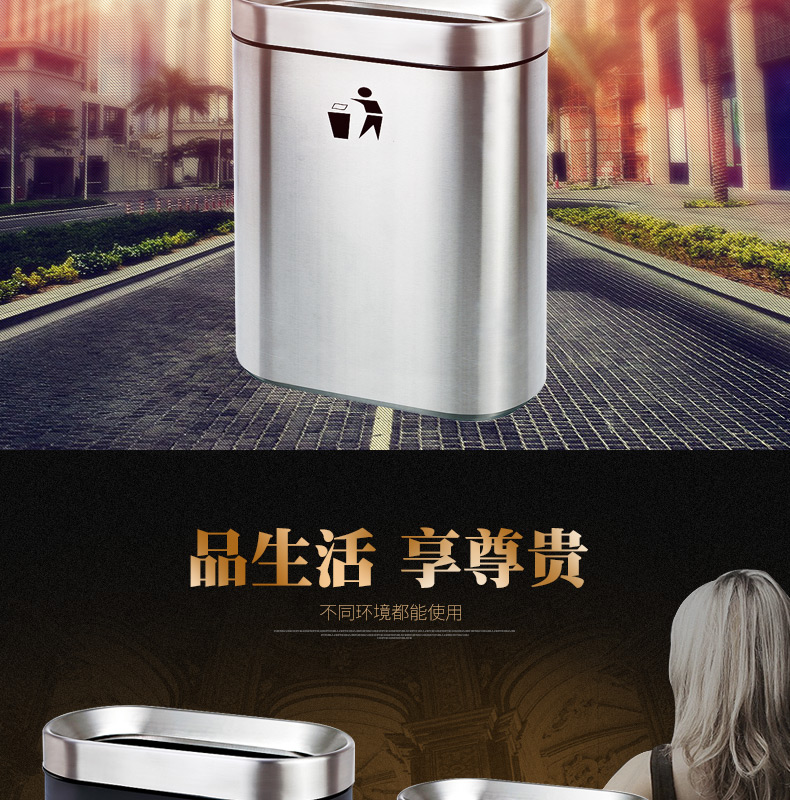 不銹鋼垃圾桶HT-BXG1120,該產(chǎn)品整體采用優(yōu)質(zhì)的不銹鋼鋼板生產(chǎn)加工而成,產(chǎn)品顏色為:原色,規(guī)格為長520mm寬280mm高720mm,本款單口室內(nèi)不銹鋼垃圾桶采用模具沖壓或折邊拼焊成型;表面處理有鏡面與砂面兩種.金屬框架選用高品質(zhì)鋼板折邊拼焊成型,表面防銹處理后經(jīng)戶外粉末噴涂;木材經(jīng)烘干、打磨、倒角、防腐處理后表面噴涂進(jìn)口抗紫外線聚脂漆.生產(chǎn)工藝:不銹鋼垃圾桶選用優(yōu)質(zhì)不銹鋼經(jīng)下料—折合—壓筋—沖孔―成型,氬氟焊、打磨、拋光、打臘.頂蓋采用滾壓成型技術(shù),HT-BXG1120不銹鋼垃圾桶也可按照您的具體需求可定制尺寸和顏色,可印制LOGO及文字,詳見說明或咨詢客服.環(huán)泰愿為環(huán)保護(hù)航,一切為您,放心采購。