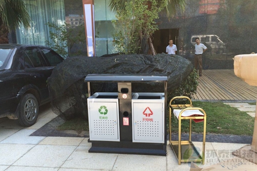 室外垃圾桶則為風格簡潔流暢的鋼制垃圾桶,一次沖壓成型,烤漆精細,結(jié)實耐用.