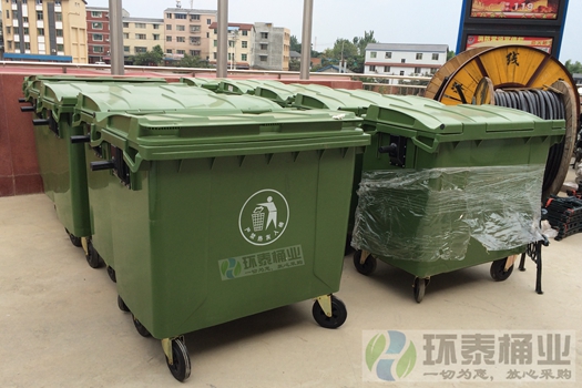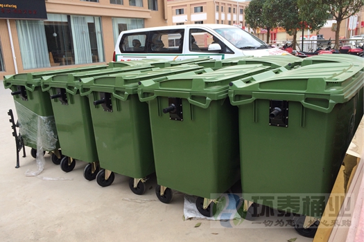 嶄新的660L塑料垃圾桶運(yùn)抵天泰劍南國際食品城