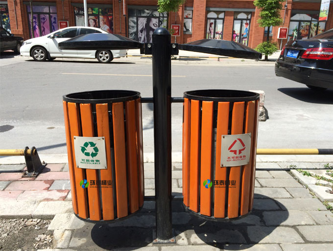 此次1958三期選擇的是鋼木分類垃圾桶,主要擺放于三期小區(qū)內(nèi)和一二三期中間的道路兩旁.鋼木垃圾桶是由鋼板桶身做內(nèi)襯,防腐木或塑木裝飾組裝而成的鋼制木條垃圾桶.所以不論是外觀還是質(zhì)量,都是小區(qū)內(nèi)擺放的不二選擇.雙桶的上蓋是由鋼板制成,不僅有裝煙頭的作用,還可以起到延長垃圾桶使用壽命的作用.雙桶分別清晰明了地標(biāo)注了環(huán)境分類的標(biāo)志.在小區(qū)里還真是一道亮麗的風(fēng)景線,