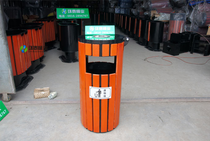 重慶客戶在我司采購一批戶外鋼木垃圾桶