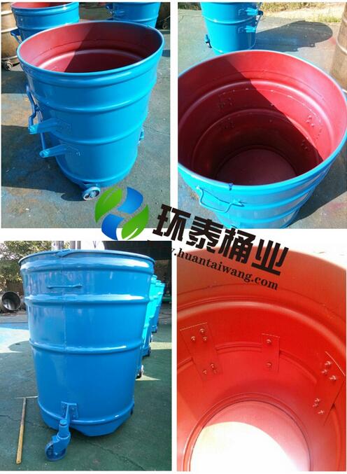 本款環(huán)衛(wèi)掛車鐵皮圓形大鐵桶采用優(yōu)質(zhì)的1.5厚的鍍鋅板,桶身經(jīng)輪壓4道加強筋直接卷筒成型,桶身另加2道3cm寬加強筋,附件沖壓成型,采用二氧保護焊接,使桶身抗壓抗沖力,堅固耐用;底層處理:桶身經(jīng)打磨、拋丸、砂洗、酸洗、硫化,桶身噴涂:首先采用防銹漆噴涂后,再進行表層優(yōu)質(zhì)戶外油漆噴涂烘干而成。
