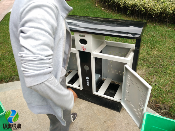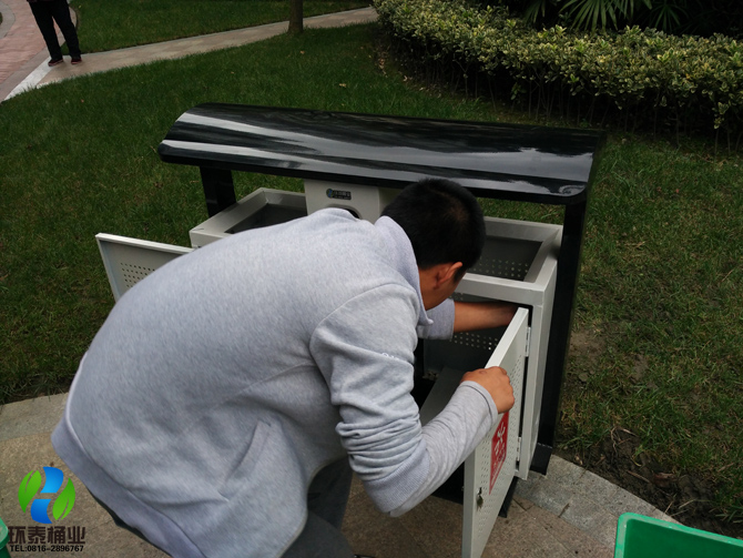 鋼制垃圾桶HT-GZ5690,該產(chǎn)品整體采用優(yōu)質(zhì)的鍍鋅鋼板生產(chǎn)加工而成,產(chǎn)品顏色為:黑灰色,規(guī)格為長(zhǎng)1000mm寬400mm高1000mm,本款戶外分類沖孔鋼制垃圾桶整體采用優(yōu)質(zhì)鍍鋅板,經(jīng)折彎沖壓一次性成型.產(chǎn)品一律用室外粉靜電噴塑,經(jīng)過180°的高溫,限度延長(zhǎng)了垃圾桶的使用壽命,使垃圾桶顏色持久不變,亮麗如新.表面經(jīng)除油——清洗——酸洗——清洗——表調(diào)——磷化——清洗——烘干——靜電粉末噴涂——高溫塑化——冷卻.噴涂粉末經(jīng)ISO9002質(zhì)量體系認(rèn)證,易保潔表面光滑之優(yōu)點(diǎn),不脫落,不起層。