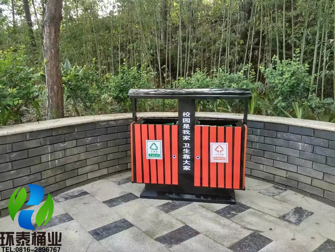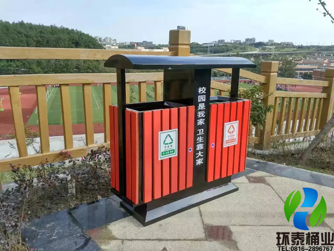 這次綿陽外國語學校訂購的是一批鋼木分類垃圾桶HT-GM6870和鋼木果皮箱HT-GM6510。