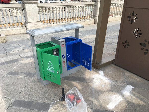 鋼制垃圾桶HT-GZ001,該產(chǎn)品整體采用優(yōu)質(zhì)的鍍鋅鋼板生產(chǎn)加工而成,產(chǎn)品顏色為:藍(lán)色,綠色,淺灰,規(guī)格為長(zhǎng)1000mm寬400mm高980mm,本款新款市政街道鋼制分類垃圾桶整體采用優(yōu)質(zhì)冷軋鋼板,經(jīng)折彎沖壓一次性成型.產(chǎn)品一律用室外粉靜電噴塑,經(jīng)過180°的高溫,限度延長(zhǎng)了垃圾桶的使用壽命,使垃圾桶顏色持久不變,亮麗如新.表面經(jīng)除油——清洗——酸洗——清洗——表調(diào)——磷化——清洗——烘干——靜電粉末噴涂——高溫塑化——冷卻.噴涂粉末經(jīng)ISO9002質(zhì)量體系認(rèn)證,易保潔表面光滑之優(yōu)點(diǎn),不脫落,不起層。