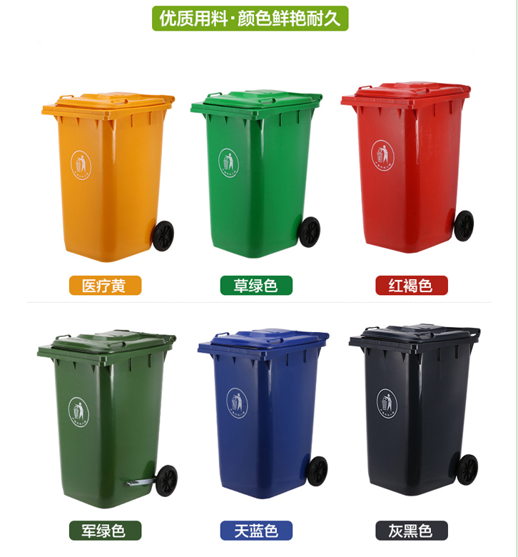 塑料垃圾桶HT-SL240M,該產(chǎn)品整體采用優(yōu)質(zhì)的高密度聚乙烯(HDPE)生產(chǎn)加工而成,產(chǎn)品顏色為:可選-藍(lán)色、綠色、灰色、紅色、黃色,規(guī)格為長730mm寬590mm高1010mm,本款240L塑料垃圾桶(多色)采用工程塑料制造,100%的高密度聚乙烯或者是聚丙烯為原材料經(jīng)過嚴(yán)格的科學(xué)的注模工藝精制而成.針對目前市場上使用的產(chǎn)品情況和經(jīng)常出現(xiàn)的問題在塑料垃圾桶底部上沿口都做了加強(qiáng)處理,在桶身的壁厚上采用非等厚設(shè)計(jì)原理,把薄弱環(huán)節(jié)加厚,所用輪子采用高承載力耐磨靜音輪,使用壽命超長,HT-SL240M塑料垃圾桶也可按照您的具體需求僅定制顏色,可印制LOGO及文字。