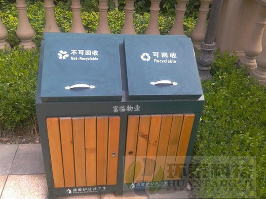 綿陽環(huán)泰桶業(yè)生產(chǎn)的鋼木垃圾桶在富臨集團(tuán)的小區(qū)里
