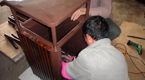 環(huán)泰工人正在精心制作垃圾桶