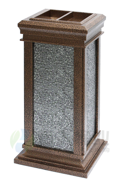 鈦金垃圾桶HT-SN8085,該產(chǎn)品整體采用優(yōu)質(zhì)的鍍鋅鋼板生產(chǎn)加工而成,產(chǎn)品顏色為:古銅漆,規(guī)格為長(zhǎng)300mm寬300mm高650mm,本款古銅漆皇家座地室內(nèi)垃圾桶采用天然的大理石與優(yōu)質(zhì)冷軋鋼板或不銹鋼鋼板制作而成,四面大理石用鋼板螺絲固定于桶體,有內(nèi)桶,方便提倒垃圾,桶頭煙灰盅可放白石子,石子可清洗.鋼板經(jīng)折彎沖壓一次性成型.產(chǎn)品一律用室外粉靜電噴塑,經(jīng)過(guò)180°的高溫,限度延長(zhǎng)了垃圾桶的使用壽命,使垃圾桶顏色持久不變,亮麗如新.表面經(jīng)除油——清洗——酸洗——清洗——表調(diào)——磷化——清洗——烘干——靜電粉末噴涂——高溫塑化——冷卻.噴涂粉末經(jīng)ISO9002質(zhì)量體系認(rèn)證,產(chǎn)品易保潔表面光滑之優(yōu)點(diǎn),不脫落,不起層,HT-SN8085鈦金垃圾桶也可按照您的具體需求可定制尺寸和顏色,可印制LOGO及文字,詳見(jiàn)說(shuō)明或咨詢客服.環(huán)泰愿為環(huán)保護(hù)航,一切為您,放心采購(gòu)。