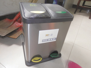 記者走訪發(fā)現(xiàn),這種新型垃圾桶每一組有兩個(gè),分別用來(lái)回收不同的垃圾,雖然棲霞街道每個(gè)辦公室內(nèi)都擺放了這種垃圾桶,但為了圖省事,大家普遍只使用了其中的一個(gè)。
