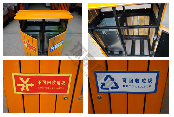 鋼木垃圾桶HT-GM7010,該產(chǎn)品整體采用優(yōu)質(zhì)的鍍鋅鋼板生產(chǎn)加工而成,產(chǎn)品顏色為:黃色,規(guī)格為長(zhǎng)900mm寬450mm高920mm,本款新款黃色雙投口分類垃圾桶制造工藝采用:1、鋼木垃圾桶桶身采用優(yōu)質(zhì)進(jìn)口防腐木、進(jìn)口山樟木或水曲柳制作,先經(jīng)過烘干脫水、壓刨、打磨、倒角、防腐處理后表面噴涂進(jìn)口抗紫外線聚脂漆等工序,再經(jīng)高溫噴塑處理,可抑制微生物的寄生、繁殖與蛀蝕,具有防水、防霉等保護(hù)功效,能夠抑制霉菌和藻類生物的生長(zhǎng),可有效減少紫外線導(dǎo)致的褪色,延長(zhǎng)木材在戶外環(huán)境中的使用壽命.客戶也可以采用塑木代替實(shí)木.2、鋼木垃圾箱采用鍍鋅鋼板材質(zhì)制作,鋼結(jié)構(gòu)均經(jīng)過酸洗、磷化表面處理,然后再使用高溫噴塑工藝,使垃圾桶更加經(jīng)久耐用,防腐、防銹,美觀大方.3、鋼木果皮箱采用內(nèi)部膨脹螺栓固定的方式,不易推到,不易被偷盜,使垃圾桶更加安全牢實(shí).隱形固定還可以防止撞傷行人.
