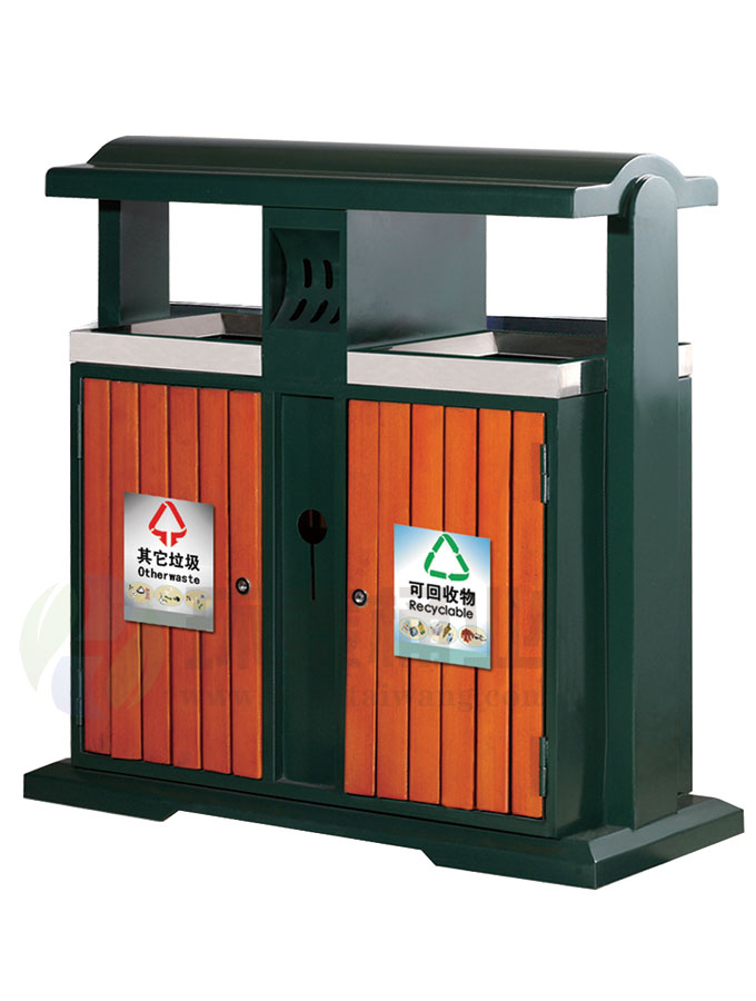 新款分類鋼木垃圾桶HT-GM6990