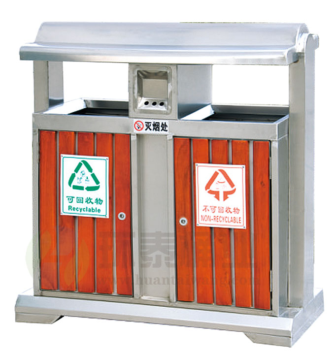 鋼木垃圾桶HT-GM6980,該產(chǎn)品整體采用優(yōu)質(zhì)的鍍鋅鋼板生產(chǎn)加工而成,產(chǎn)品顏色為:銀白色,規(guī)格為長(zhǎng)950mm寬400mm高1000mm,本款戶外鋼木分類垃圾桶制造工藝采用:1、鋼木垃圾桶桶身采用優(yōu)質(zhì)進(jìn)口防腐木、進(jìn)口山樟木或水曲柳制作,先經(jīng)過(guò)烘干脫水、壓刨、打磨、倒角、防腐處理后表面噴涂進(jìn)口抗紫外線聚脂漆等工序,再經(jīng)高溫噴塑處理,可抑制微生物的寄生、繁殖與蛀蝕,具有防水、防霉等保護(hù)功效,能夠抑制霉菌和藻類生物的生長(zhǎng),可有效減少紫外線導(dǎo)致的褪色,延長(zhǎng)木材在戶外環(huán)境中的使用壽命.客戶也可以采用塑木代替實(shí)木.2、鋼木垃圾箱采用鍍鋅鋼板材質(zhì)制作,鋼結(jié)構(gòu)均經(jīng)過(guò)酸洗、磷化表面處理,然后再使用高溫噴塑工藝,使垃圾桶更加經(jīng)久耐用,防腐、防銹,美觀大方.3、鋼木果皮箱采用內(nèi)部膨脹螺栓固定的方式,不易推到,不易被偷盜,使垃圾桶更加安全牢實(shí).隱形固定還可以防止撞傷行人.