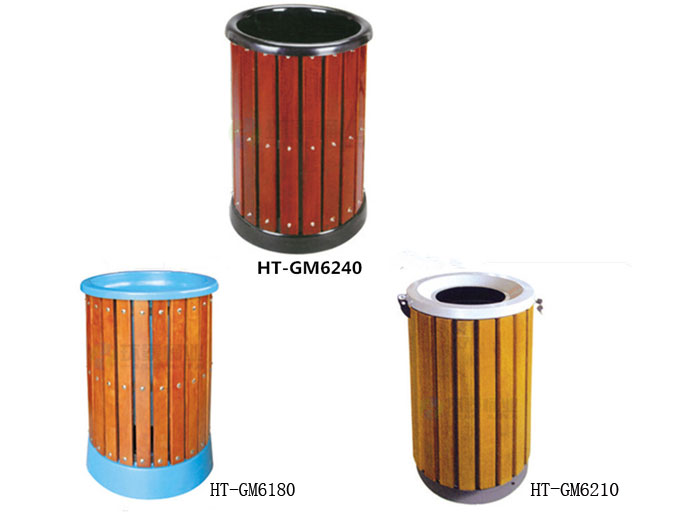 上投口圓形鋼木垃圾桶HT-GM6210