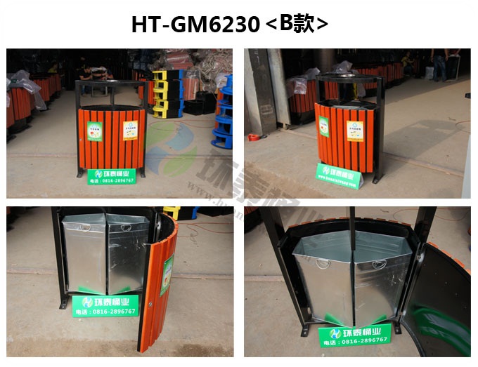 鋼木垃圾桶HT-GM6230,該產(chǎn)品整體采用優(yōu)質(zhì)的冷軋鋼板,鍍鋅鋼板,防腐木生產(chǎn)加工而成,產(chǎn)品顏色為:黑色+原木色,規(guī)格為長700mm寬400mm高1000mm,本款戶外木條分類垃圾箱制造工藝采用:1、鋼木垃圾桶桶身采用優(yōu)質(zhì)進(jìn)口防腐木、進(jìn)口山樟木或水曲柳制作,先經(jīng)過烘干脫水、壓刨、打磨、倒角、防腐處理后表面噴涂進(jìn)口抗紫外線聚脂漆等工序,再經(jīng)高溫噴塑處理,可抑制微生物的寄生、繁殖與蛀蝕,具有防水、防霉等保護(hù)功效,能夠抑制霉菌和藻類生物的生長,可有效減少紫外線導(dǎo)致的褪色,延長木材在戶外環(huán)境中的使用壽命.客戶也可以采用塑木代替實(shí)木.2、鋼木垃圾箱采用鍍鋅鋼板材質(zhì)制作,鋼結(jié)構(gòu)均經(jīng)過酸洗、磷化表面處理,然后再使用高溫噴塑工藝,使垃圾桶更加經(jīng)久耐用,防腐、防銹,美觀大方.3、鋼木果皮箱采用內(nèi)部膨脹螺栓固定的方式,不易推到,不易被偷盜,使垃圾桶更加安全牢實(shí).隱形固定還可以防止撞傷行人.