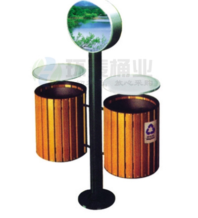 圓柱形鋼木分類垃圾桶HT-GM6470