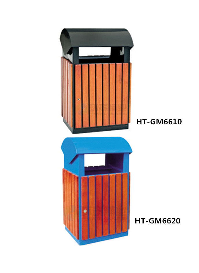 戶外鋼制防腐木垃圾桶HT-GM6610