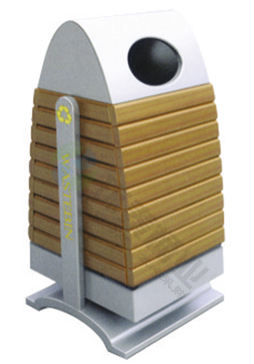 三角造型戶外鋼木垃圾桶HT-GM6650