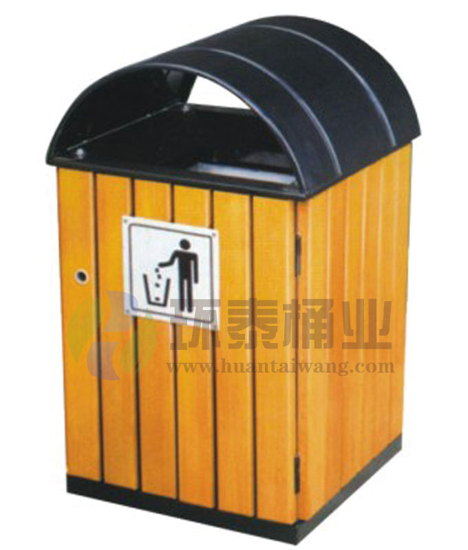 防腐木條單桶鋼木垃圾桶HT-GM6700