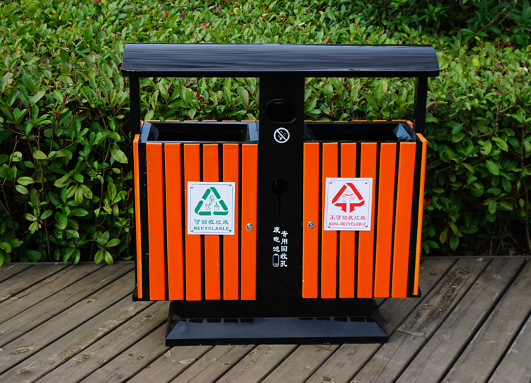 戶外鋼木分類垃圾桶HT-GM6870
