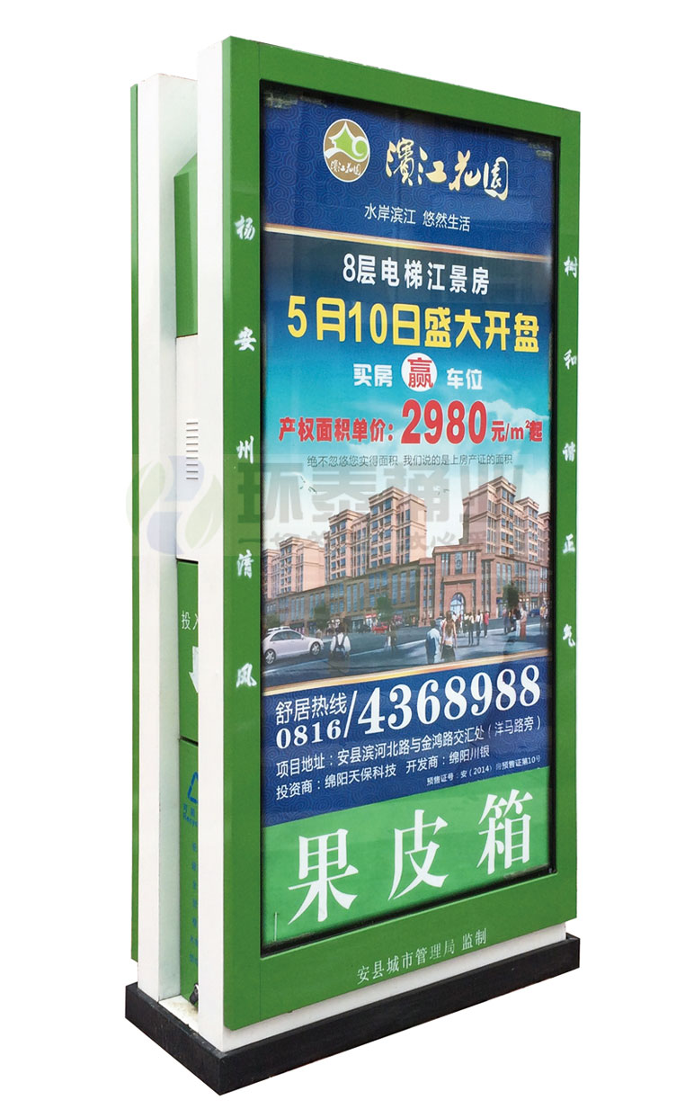 廣告垃圾箱位置優(yōu)勢(shì)明顯,廣告沖擊力強(qiáng)城市的垃圾桶都是設(shè)置在比較明顯的位置,無論是在什么地方你都能很容易的發(fā)現(xiàn)它.而且城市百姓每天都會(huì)同它接觸.在上面的廣告畫面會(huì)不時(shí)的閃見你的腦海給你強(qiáng)烈的廣告沖擊.這種每時(shí)每刻在不同的地方都能見到.