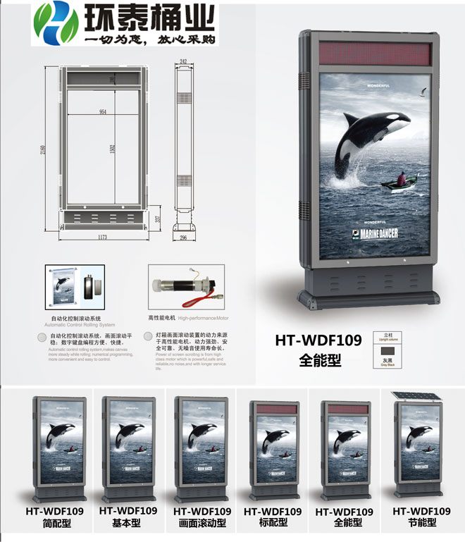 鋼制垃圾桶HT-WDF109,該產品整體采用優(yōu)質的電解溶鍍鋅板生產加工而成,產品顏色為:灰黑,規(guī)格為長1173mm寬296mm高2160mm,本款德瀾仕新款分類廣告箱,HT-WDF109鋼制垃圾桶也可按照您的具體需求僅定制顏色,可印制LOGO及文字,詳見說明或咨詢客服.環(huán)泰愿為環(huán)保護航,一切為您,放心采購。