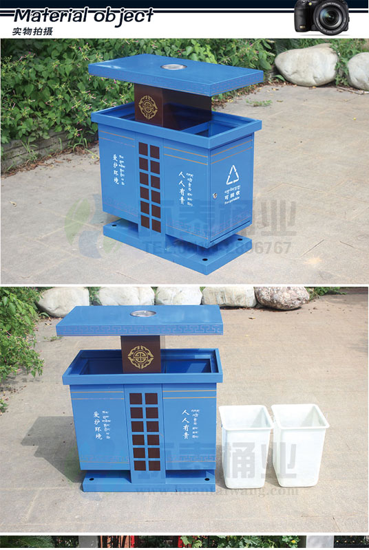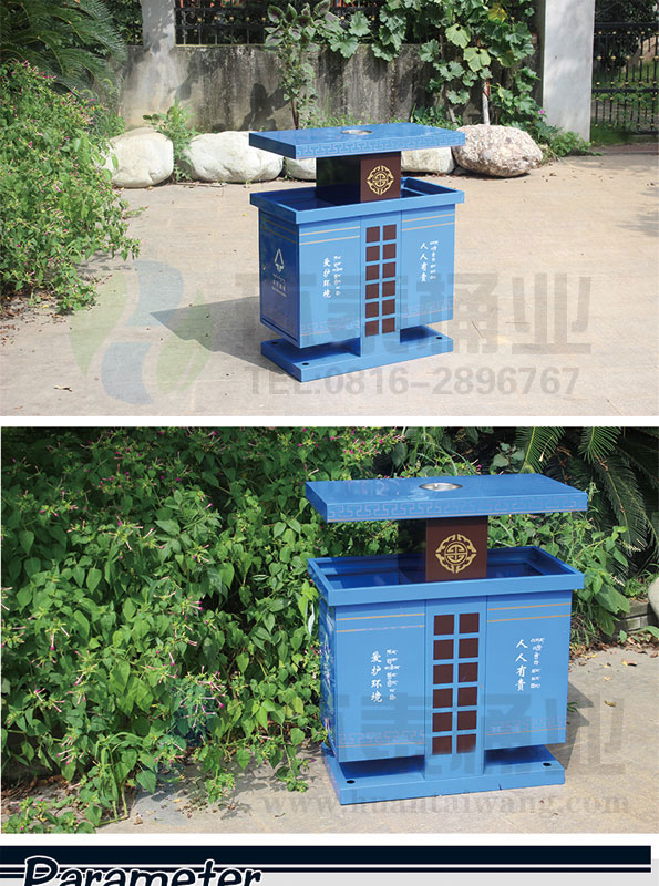 鋼制垃圾桶HT-GZ7790,該產(chǎn)品整體采用優(yōu)質(zhì)的鍍鋅鋼板生產(chǎn)加工而成,產(chǎn)品顏色為:藍(lán)色,規(guī)格為長750mm寬400mm高900mm,本款新款古典式鋼制垃圾桶整體采用優(yōu)質(zhì)鍍鋅板,經(jīng)折彎沖壓一次性成型.產(chǎn)品一律用室外粉靜電噴塑,經(jīng)過180°的高溫,限度延長了垃圾桶的使用壽命,使垃圾桶顏色持久不變,亮麗如新.表面經(jīng)除油——清洗——酸洗——清洗——表調(diào)——磷化——清洗——烘干——靜電粉末噴涂——高溫塑化——冷卻.噴涂粉末經(jīng)ISO9002質(zhì)量體系認(rèn)證,易保潔表面光滑之優(yōu)點(diǎn),不脫落,不起層。,HT-GZ7790鋼制垃圾桶也可按照您的具體需求僅定制顏色,詳見說明或咨詢客服.環(huán)泰愿為環(huán)保護(hù)航,一切為您,放心采購。