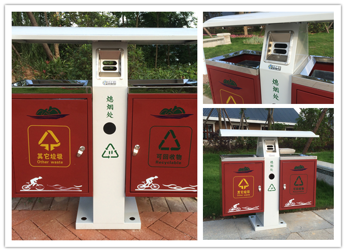 鋼制垃圾桶一種存放垃圾的容器,使用冷軋鋼板或者鍍鋅鋼板制作而成.因?yàn)楫a(chǎn)品表面經(jīng)過噴塑和酸處理,防腐蝕性能更高.采用酸處理+噴塑處理,更利于防銹,增加使用壽命.這是鋼制垃圾箱所具有的強(qiáng)大的優(yōu)勢.