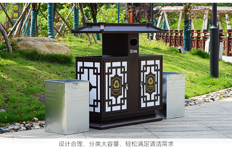 鋼制垃圾桶HT-GZ6650,該產(chǎn)品整體采用優(yōu)質(zhì)的鍍鋅鋼板生產(chǎn)加工而成,產(chǎn)品顏色為:黑.白,規(guī)格為920*400*960mm,本款本款戶外分類沖孔鋼制垃圾桶整體采用優(yōu)質(zhì)鍍鋅板,經(jīng)折彎沖壓一次性成型.產(chǎn)品一律用室外粉靜電噴塑,經(jīng)過180°的高溫,限度延長(zhǎng)了垃圾桶的使用壽命,使垃圾桶顏色持久不變,亮麗如新.表面經(jīng)除油——清洗——酸洗——清洗——表調(diào)——磷化——清洗——烘干——靜電粉末噴涂——高溫塑化——冷卻.噴涂粉末經(jīng)ISO9002質(zhì)量體系認(rèn)證,易保潔表面光滑之優(yōu)點(diǎn),不脫落,不起層。,HT-GZ6650鋼制垃圾桶也可按照您的具體需求僅定制顏色,可定制尺寸和顏色,可印制LOGO及文字,詳見說明或咨詢客服.環(huán)泰愿為環(huán)保護(hù)航,一切為您,放心采購(gòu)。