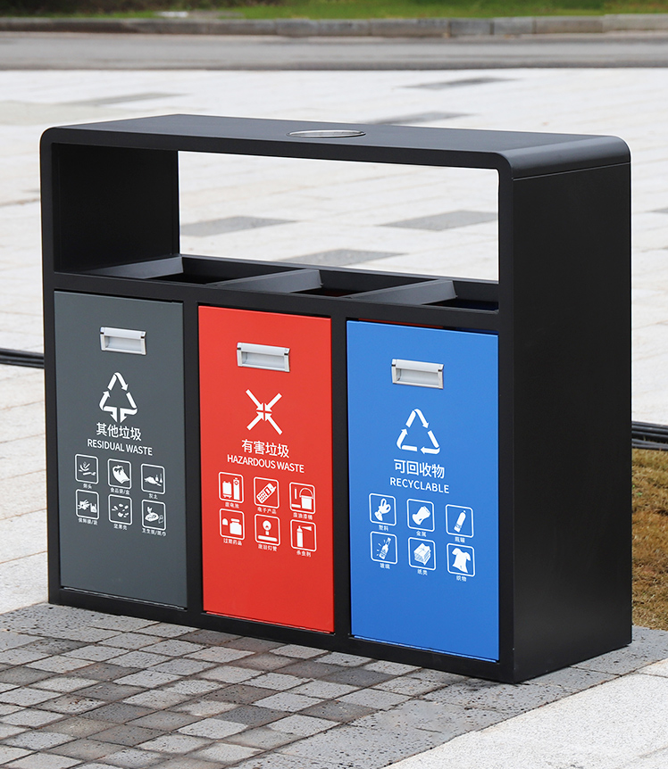 戶外三分類鋼制垃圾桶HT-GZ5760