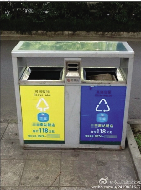 酒店廣告做到垃圾箱上 42組果殼箱遭“毒手”