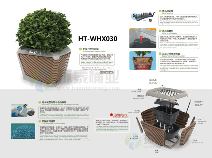 花盆/花箱HT-WHX030,該產(chǎn)品整體采用優(yōu)質的高密度聚乙烯(HDPE),塑料生產(chǎn)加工而成,產(chǎn)品顏色為:花紋,規(guī)格為,本款后現(xiàn)代主義花盆,HT-WHX030花盆/花箱也可按照您的具體需求可印制LOGO及文字,詳見說明或咨詢客服.環(huán)泰愿為環(huán)保護航,一切為您,放心采購。