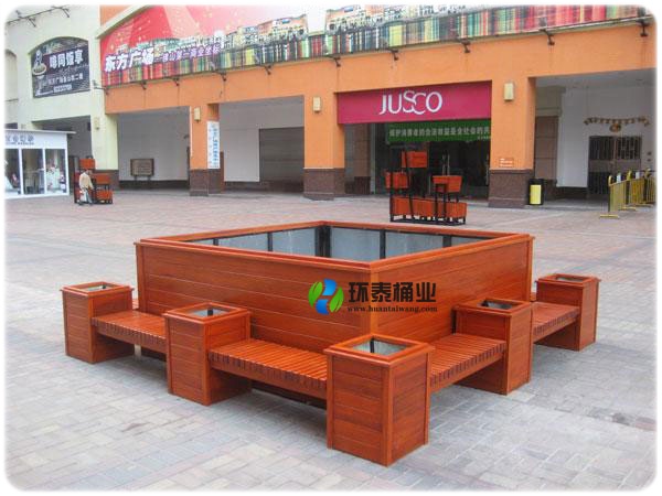 廣場(chǎng)防腐木花箱座椅HT-HX110