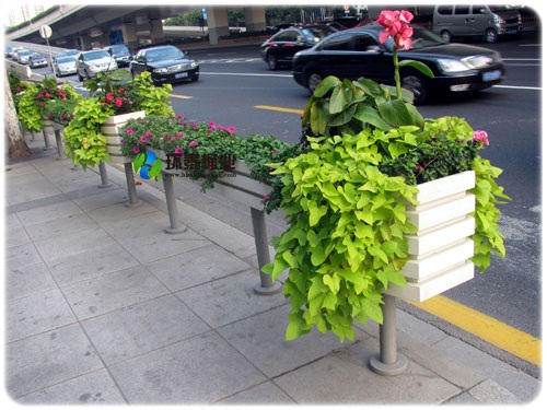 街道白色帶鋼管花箱