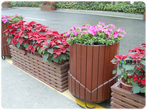 小區(qū)房產(chǎn)景觀防腐木花箱HT-HX1010