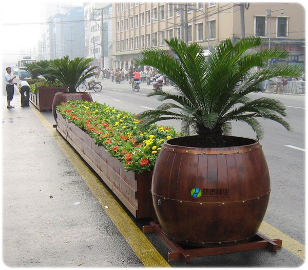 進(jìn)口防腐木街道圓桶花桶