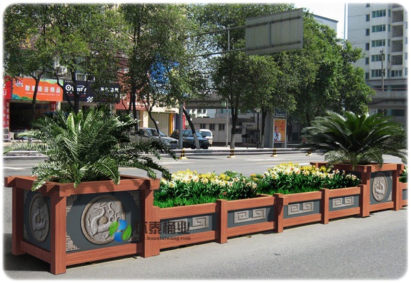 小區(qū)房產(chǎn)景觀防腐木花箱HT-HX1010