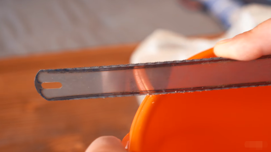 首先,用鋸片在垃圾桶邊緣進行切割,這樣能讓袋口可以套進這些切口。