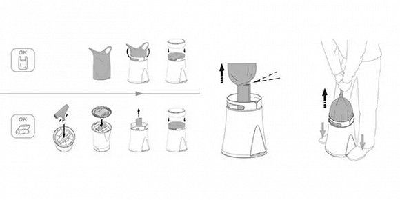 Trash .Know設(shè)計的抽取式垃圾桶獲得了紅點設(shè)計大獎,可將垃圾袋上方多余的袋身固定,進而防止袋身下滑至桶內(nèi),而桶身側(cè)邊的雙踏板設(shè)計,在垃圾桶裝滿時,雙腳輕踏踏板可防止桶身隨著拉取過滿的垃圾包而被提起或翻倒。