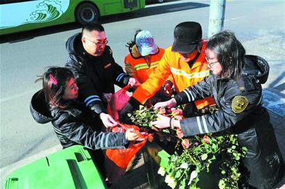 情人節(jié)玫瑰頻傷環(huán)衛(wèi)工 志愿者垃圾桶里來(lái)挑刺