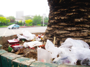 昨日(27日),前往天津周鄧紀(jì)念館參觀的孫女士在經(jīng)過大門時(shí)發(fā)現(xiàn),門前種著景觀樹的幾個(gè)大花壇中堆滿了被丟棄的垃圾雜物,而周邊幾個(gè)也是“同病相憐”!斑@是花壇又不是垃圾桶,怎么能這樣做呢?”孫女士向本報(bào)熱線反映了部分市民的不文明行為。