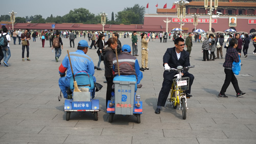 3.整個廣場大約設(shè)置了十個左右的移動環(huán)衛(wèi)工,還有一位環(huán)衛(wèi)督查,可以隨時回收游客身上的垃圾,非常人性化。