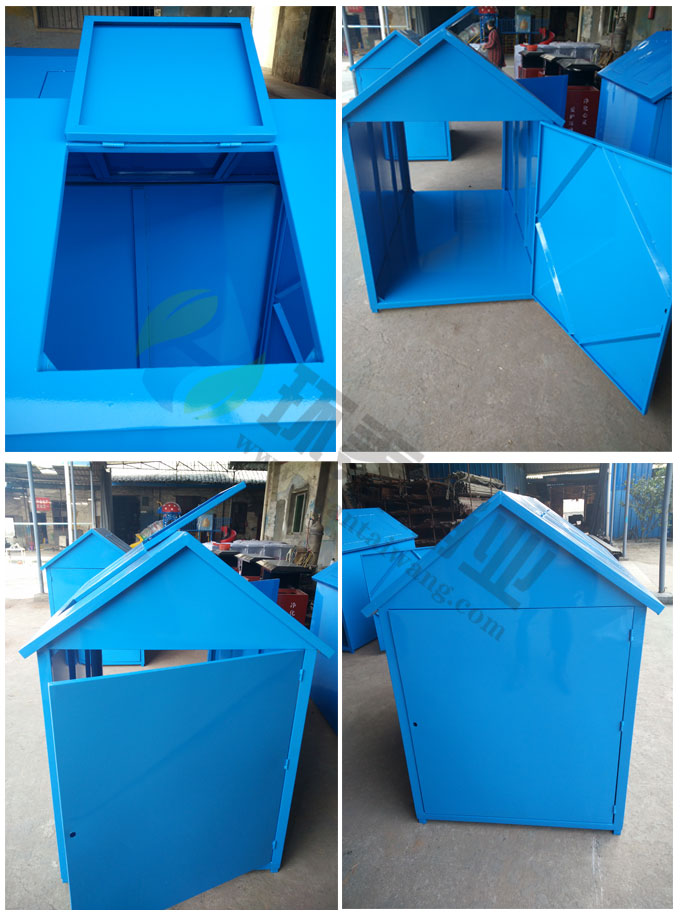 垃圾屋/垃圾箱HT-LJW626,該產(chǎn)品整體采用優(yōu)質(zhì)的鍍鋅鋼板生產(chǎn)加工而成,產(chǎn)品顏色為:藍(lán)色,規(guī)格為長1660mm寬980mm高1330mm,本款鋼制戶外垃圾屋采用模具沖壓或折邊拼焊成型;表面處理有鏡面與砂面兩種.金屬框架選用高品質(zhì)鋼板折邊拼焊成型,表面防銹處理后經(jīng)戶外粉末噴涂;木材經(jīng)烘干、打磨、倒角、防腐處理后表面噴涂進(jìn)口抗紫外線聚脂漆.生產(chǎn)工藝:不銹鋼垃圾桶選用優(yōu)質(zhì)不銹鋼經(jīng)下料—折合—壓筋—沖孔―成型,氬氟焊、打磨、拋光、打臘.頂蓋采用滾壓成型技術(shù),HT-LJW626垃圾屋/垃圾箱也可按照您的具體需求僅定制顏色,可印制LOGO及文字,詳見說明或咨詢客服.環(huán)泰愿為環(huán)保護(hù)航,一切為您,放心采購。