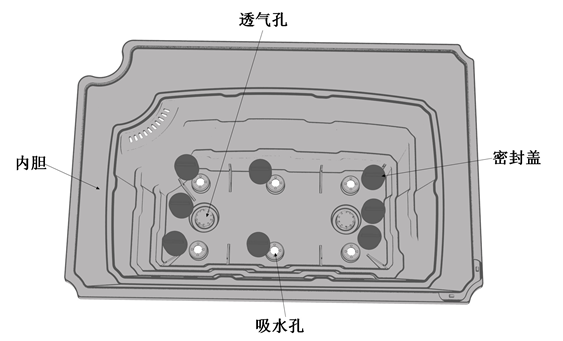 4.用密封蓋封住吸水孔及透氣孔。(如下圖)(注意:內(nèi)膽中如有吸水介質(zhì)必須將其全部取出)