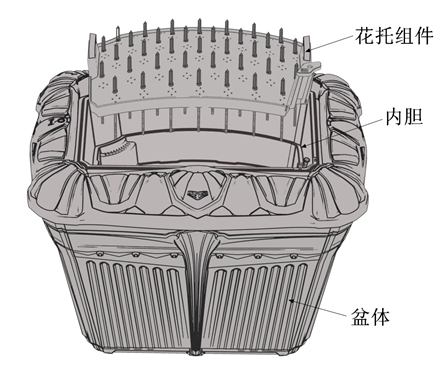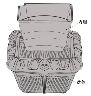 5.先將裝配好的內(nèi)膽放入盆體內(nèi),再把裝配好后的花托組件放入內(nèi)膽上(如下圖)。
