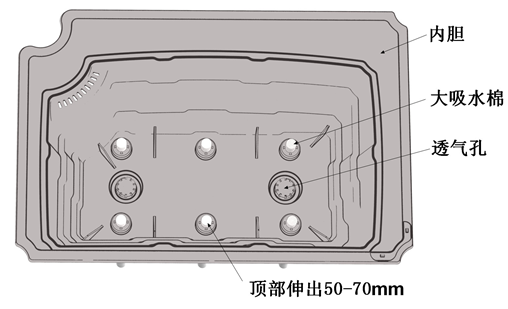 2.取出內(nèi)膽和6個粗吸水介質(zhì),將吸水介質(zhì)依次從內(nèi)膽底部的吸水孔穿出,穿出50到70mm之間即可(如下圖)。