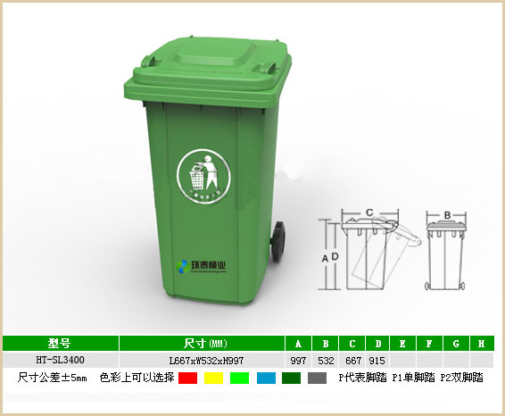 180L戶外綠色180L塑料垃圾桶(多色)HT-SL3400