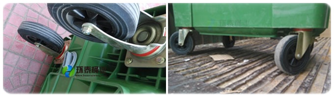 1、100%高密度聚乙烯原料注塑成型,耐酸、耐堿、耐腐蝕;HT-SL660塑料垃圾桶每只輪用四只外六角羅栓連接桶底,兩只輪子帶有鎖止功能,兩只為萬向轉(zhuǎn)動輪,方便移動。多用于環(huán)衛(wèi)系統(tǒng)、物業(yè)管理系統(tǒng)的垃圾收集和環(huán)衛(wèi)打掃工作。