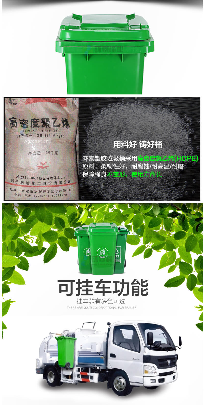 1、100%高密度聚乙烯原料注塑成型,耐酸、耐堿、耐腐蝕;HT-SL240G環(huán)衛(wèi)掛車?yán)?針對掛車設(shè)計(jì)。背后有掛車專用卡槽,容易掛車,不易受損,承重更強(qiáng)。